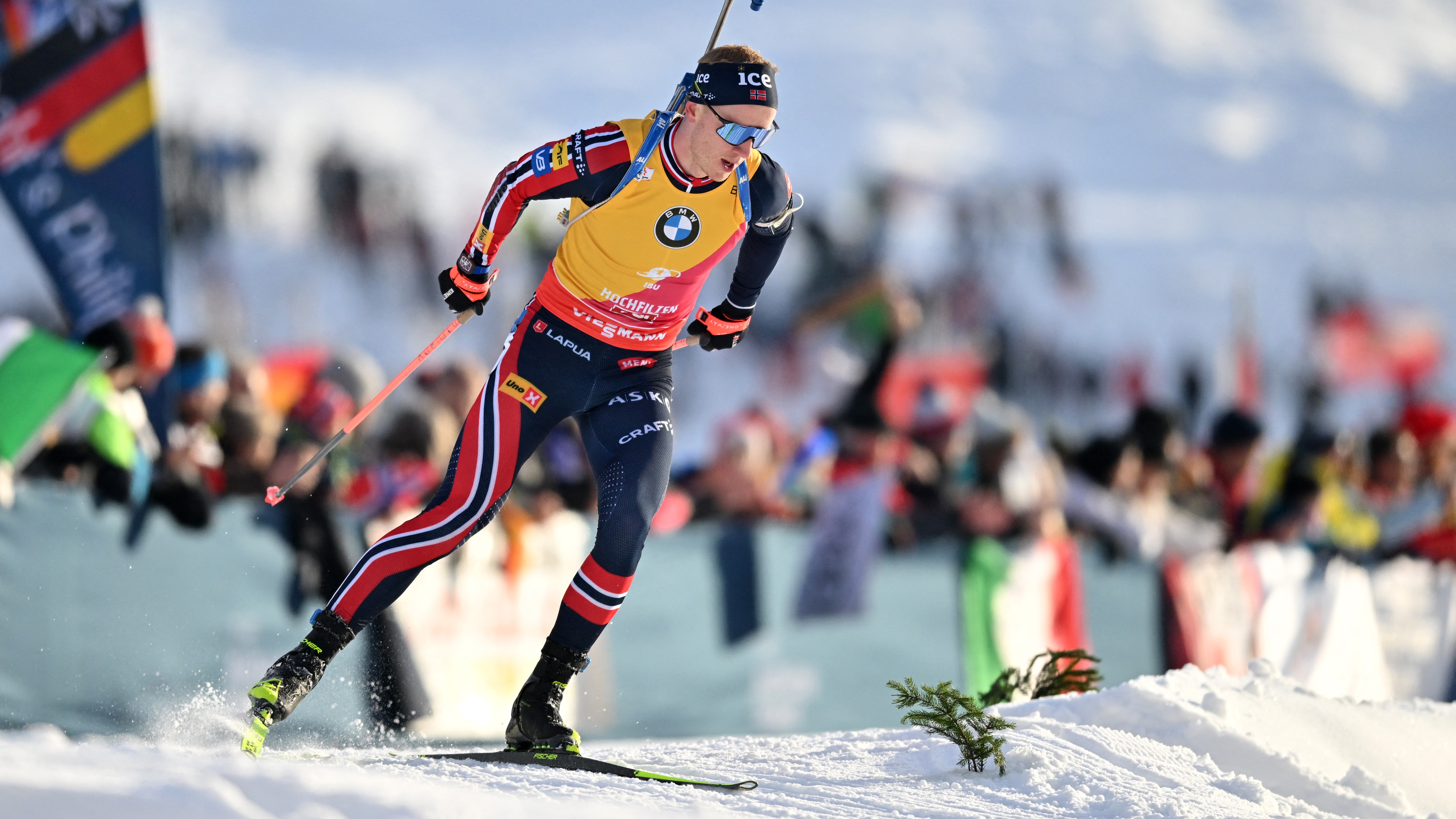 Giacomel kommt trotz zweier Strafrunden hinter Dale-Skjevdal und Frey als Dritter ins Ziel. Lägreid trifft stehend alles. Er geht als Zweiter hinter Bö raus. Das dürfte ein norwegischer Tag am Holmenkollen werden.
