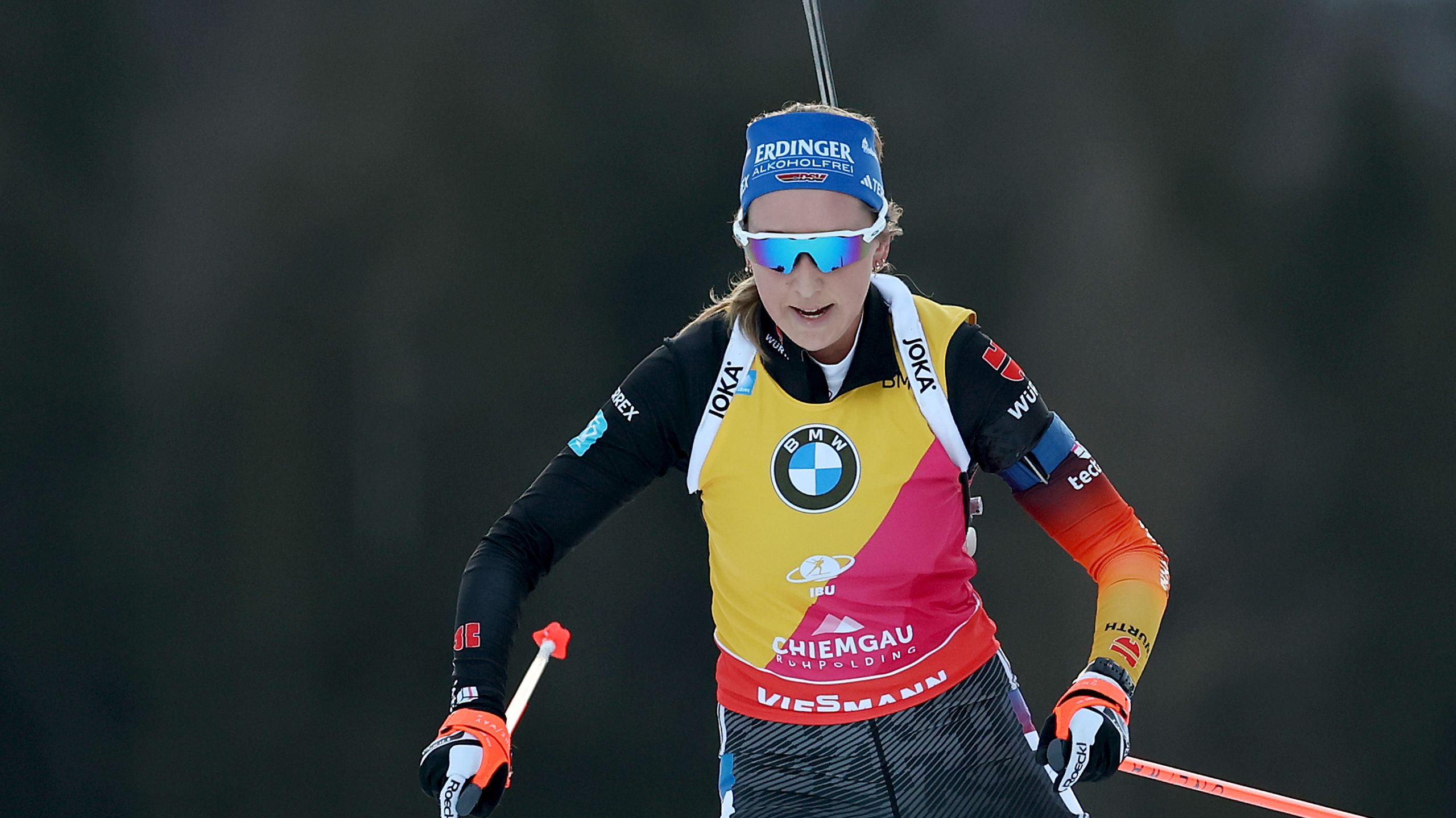 Simon erreicht in diesem Moment als Fünfte das Ziel. Ihre Landsfrau Camille Bened verfehlt stehend eine Scheibe. Mit null Fehlern hätte sie sogar noch das Podium angreifen können. Auch so wird es eine sehr gute Leistung für die aus dem IBU-Cup aufgerückte Französin.