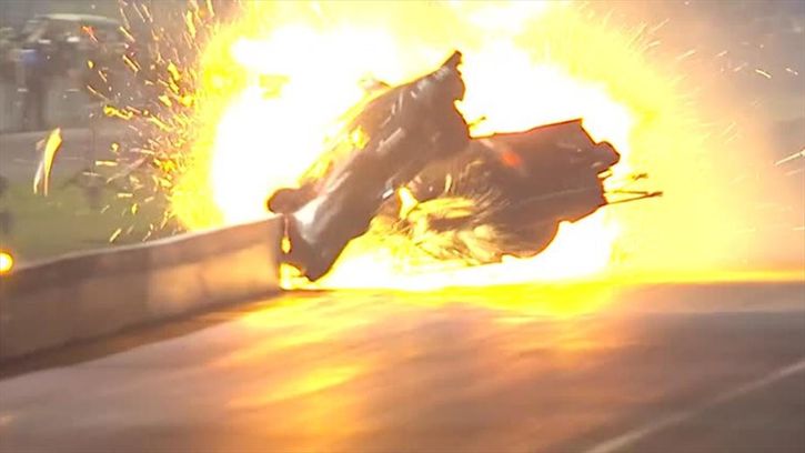 Heftiger Unfall bei Dragster-Auftakt: Autos fangen Feuer