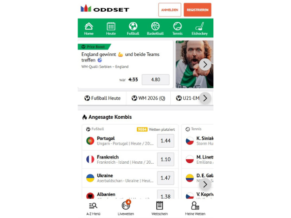 Oddset ist das staatliche Sportwettenangebot in Deutschland und gehört zu den ältesten Sportwetten-Anbietern auf dem Markt. Im Vergleich zu privaten top Wettanbietern ist die Auswahl an Märkten deutlich kleiner, dafür punktet Oddset mit absoluter Seriosität und jahrzehntelanger Tradition.