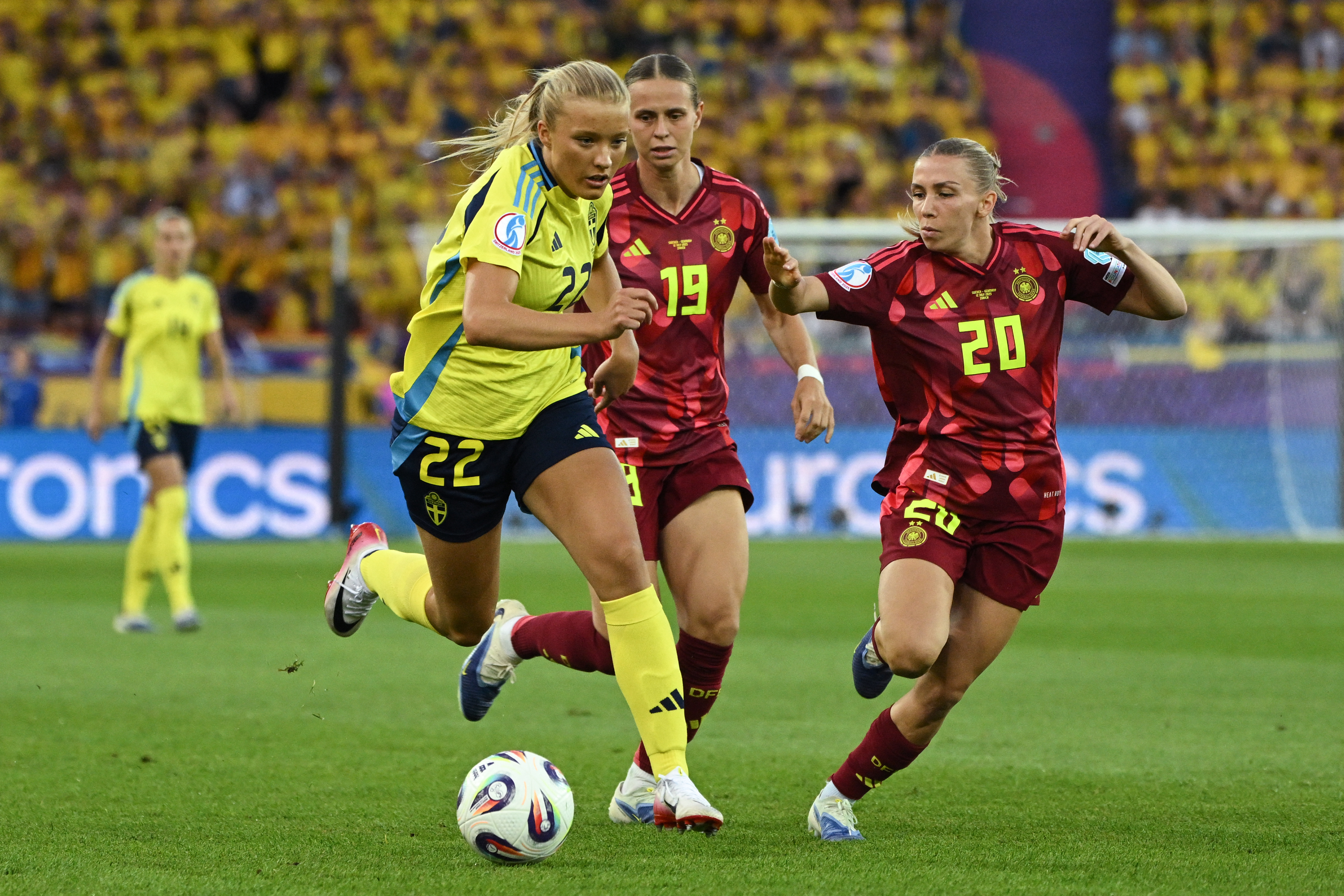 Die deutsche Frauen-Nationalmannschaft unterliegt Schweden im letzten EM-Gruppenspiel mit 1:4 und verpasst den Gruppensieg deutlich. Stattdessen muss das DFB-Team als Zweiter der Gruppe C nun im Viertelfinale gegen den Ersten der Gruppe D antreten. Es war insgesamt ein völlig gebrauchter Abend für die DFB-Frauen, obwohl der Start mit dem Tor durch Jule Brand vielversprechend verlief. Dann aber kamen routinierte Schwedinnen immer besser auf und drehten gegen dezimierte Deutsche die Partie.