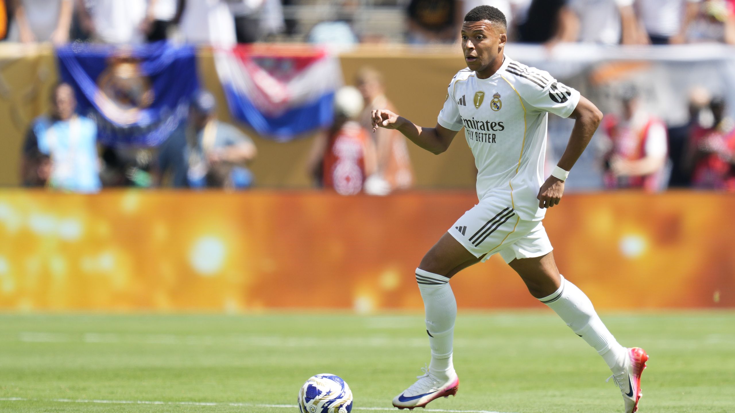 Bei Mastantuono blitzt durchaus auf, was für ein besonderer Kicker er ist. Da darf ganz Real Madrid gespannt sein auf die Debütsaison des aufregenden Neuzugangs. Erst leitet er einen Gegenstoß mit einem guten Ballgewinn ein, bei dem sich Tchouameni dann aber verläuft. Dann kommt Mastantuono zu seinem ersten Abschluss, von links aus spitzem Winkel. Herrera bleibt im kurzen Eck stabil und wehrt den Ball ab.