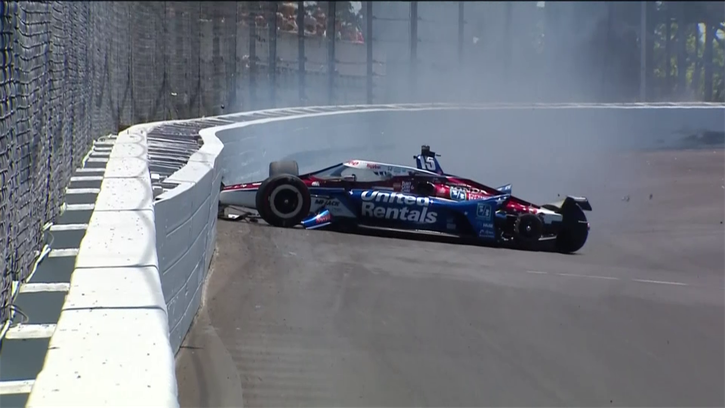 Indycar 50 : crazy crash - a wheel goes off and the worst is avoided