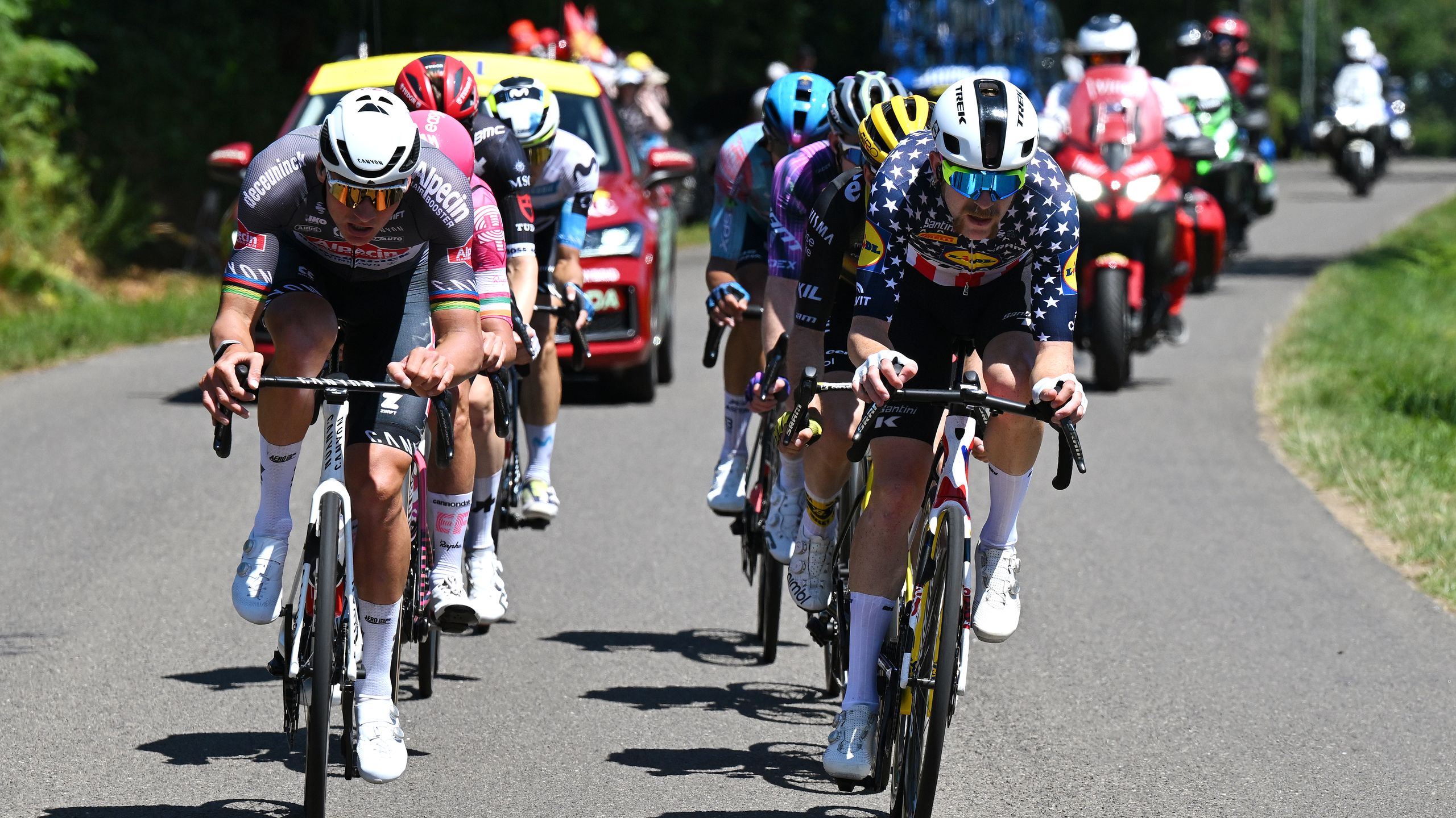Die Bergpunkte werden freundschaftlich aufgeteilt. Nein, ganz genau so ist es nicht. Denn Storer sprintet vor Dunbar zum Sieg und gewinnt somit zwei Zähler. Dunbar nimmt einen weiteren Punkt mit. Jetzt ist es auch klar, dass Wellens erneut in das Gepunktete Trikot schlüpfen wird.