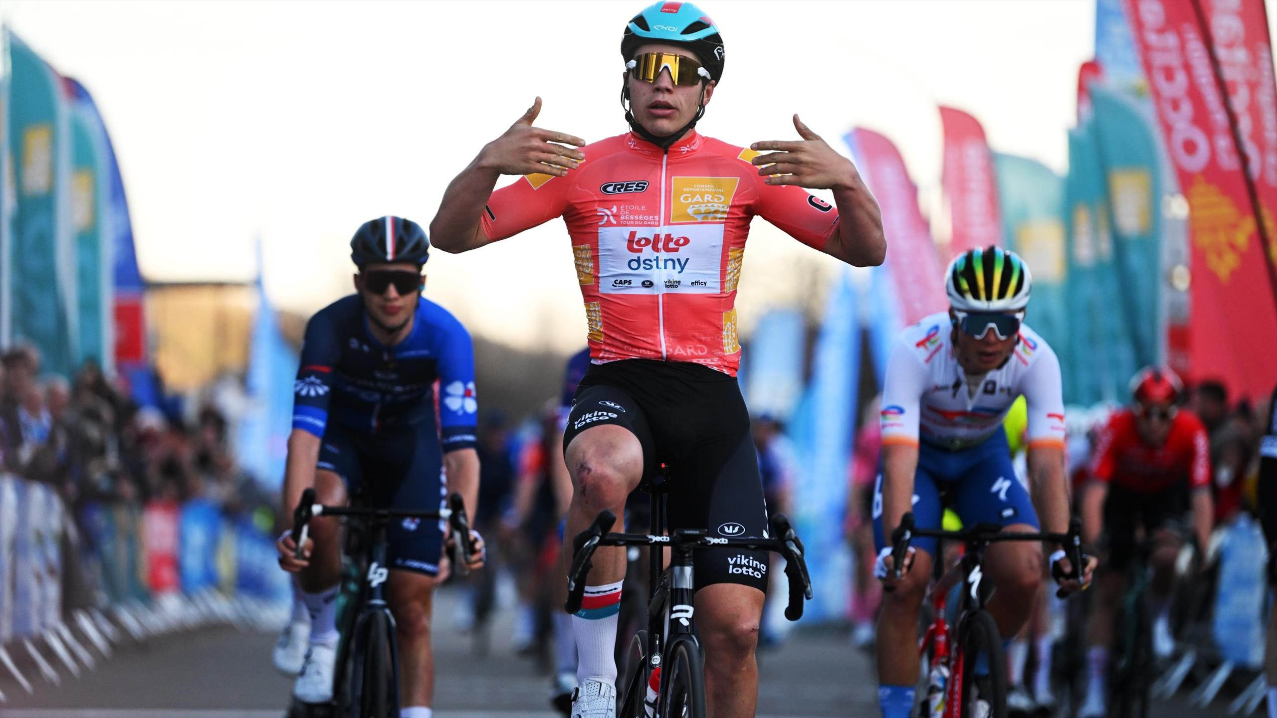 Keine Mannschaft kann sich organisieren. De Lie findet noch einen Helfer, aber aus dem Hintergrund schießen van Poppel und Meeus vorbei. Der Belgier übernimmt 150 Meter vor dem Ziel - und vollendet problemlos!
