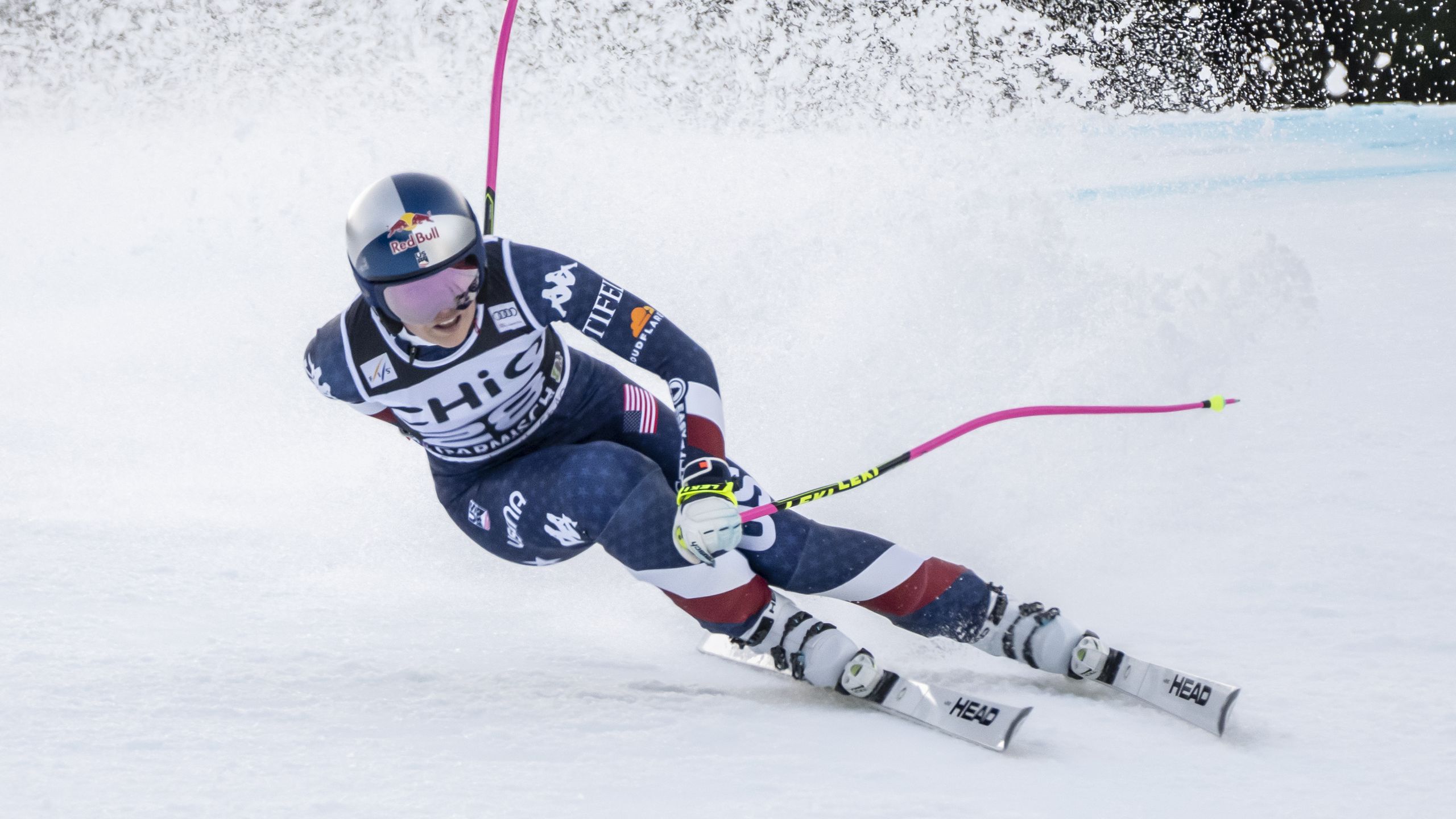 Nun mit Breezy Johnson die Vierte der Abfahrt. Aber der Super-G ist nicht ihre Spezialdisziplin. Das Tor am Seilbahnsprung erwischt die US-Amerikanerin mit viel Glück, mogelt sich etwas durch. In der FIS-Schneise ist sie aber schön auf Zug und holt sich als 19. immerhin Punkte.